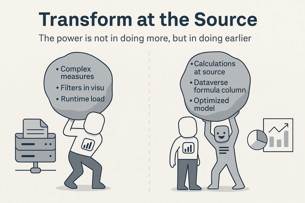 Using formula columns in Dataverse not only simplifies your model, it also frees Power BI from unnecessary work—especially in DirectQuery scenarios, where every calculation matters. But this principle goes beyond Power Fx or Power BI: whether it’s with formulas in the source or with the overall architectural design of your solution (regardless of the technology), making smart decisions early on often makes the difference between a system that flows and one that gets stuck.